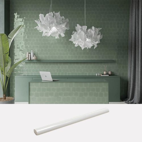 Stykket fås i alle seriens farver og kan hjælpe med at afslutte en flisestallation midt på væggen på en elegant og æstetisk måde - for at undgå den hårde overgang mellem flisevæg og malet væg.