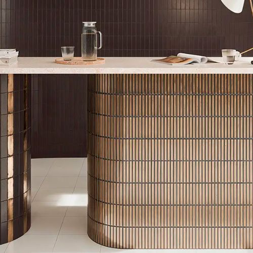 London Calling Bars er vægfliser i Kit-kat format. Fliserne er med metalliske overflader i hhv. guld og søvl.